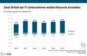 Gemäß dem Bitkom profitieren die insgesamt guten Geschäftserwartungen in der Branche noch von der positiven Entwicklung im zweiten Halbjahr 2014. 74 Prozent berichten von Umsatzsteigerungen zwischen Juli und Dezember, 12 Prozent von rückläufigen Umsätzen. Für das Gesamtjahr 2015 erwarten 85 Prozent der ITK-Unternehmen steigende und 4 Prozent sinkende Umsätze. Mehr Arbeitsplätze: 68 Prozent planen neue Mitarbeiter einzustellen (2014: 63 Prozent).