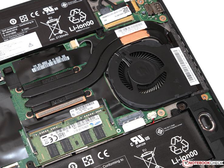 Die Abwärme des 25-Watt-Chips möglichst leise aus dem schlanken 14-Zoll-Gehäuse abzuführen, dürfte Lenovos Ingenieuren einiges Kopfzerbrechen bereitet haben. Das Ergebnis kann sich jedoch sehen lassen: Im Leerlauf- und Office-Betrieb steht der Lüfter zumeist still und springt auch bei steigender Auslastung erst nach einiger Zeit auf sehr niedriger Stufe an. In üblichen Büroumgebungen können wir den entstehenden Lärmpegel auch aus kurzer Entfernung als praktisch unhörbar bezeichnen. Gleichzeitig erwärmt sich das Gehäuse nur marginal – wer das T460s beim Surfen auf der Couch oder im Bett auf dem Schoß betreiben möchte, muss also keine unangenehme Temperaturentwicklung befürchten. Überhaupt ist das Ultrabook dank seinem geringen Gewicht und den weit öffnenden Scharnieren perfekt für diesen Einsatzzweck geeignet.