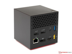Optisch beschreitet das ThinkPad WiGig Dock vollkommen neue Wege und präsentiert sich als kleiner, schwarzer Würfel mit einer Kantenlänge von rund 8,5 Zentimetern. Die genannten Anschlüsse befinden sich zum Großteil an der Rückseite, lediglich das Kensington Lock sowie zwei USB-Anschlüsse wurden links am Gehäuse platziert. Die genaue Unterscheidung der einzelnen Seiten treffen wir dabei nicht ohne Grund: Aufgrund der extrem hohen Trägerfrequenz ist 802.11ad zwingend auf eine exakte Ausrichtung samt Sichtverbindung angewiesen; dreht man den Würfel mehr als 90 Grad zur Seite, oder steht ein größerer Gegenstand direkt zwischen Dock und Notebook, kann die Verbindung bereits abreißen. Bei sorgfältiger Aufstellung arbeitet WiGig dagegen durchaus auch bei 3 bis 4 Metern Entfernung absolut stabil und mit nahezu voller Geschwindigkeit.