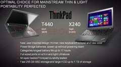 In der Serie ThinkPad T sollen die Modelle ThinkPad T440s und T440 wieder Bestseller im Premiumsegment werden. Beide Modelle bieten unter der flachen Haube eine vergleichbare Ausstattung. Bis zu 1 TByte HDD-Speicher oder SSDs, schnelles WLAN and optional auch 4G/LTE-Konnektivität. Beide Ultrabooks sind jeweils rund 21 Millimeter flach. Unterschiede gibt es bei den Displays, den übrigen Abmessungen und beim Gewicht.