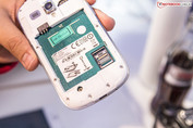 Natürlich hatten wir vor Ort auch die Möglichkeit das Smartphone anzutesten. Es fühlt sich wertig an, wobei es natürlich nicht an den Aluminium-Unibody des Apple iPhone 5 herankommt. Die Größe erscheint im Vergleich zum größeren Galaxy S3 (GT-I9300) aber deutlich angenehmer. Es liegt gut in der Hand und ist mit 111 Gramm auch sehr leicht. Als Betriebssystem nutzt Samsung das aktuelle Google Android 4.1.1 (Jelly Bean). Im ersten Test überzeugt auch die Performance. An das normale S3 kommt es natürlich nicht heran. Eine gute Nachricht für Nutzer älterer Smartphones oder Mobiltelefone: Das Galaxy S3 Mini nutzt eine normale SIM-Karte. Für eine Micro- oder Nano-SIM wäre ein Adapter notwendig.