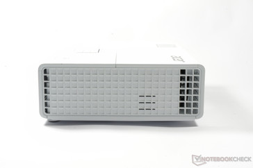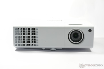 Die Verarbeitung gibt keinen Grund zur Beanstandung und befindet sich im erwarteten Bereich bei einem der günstigeren Beamer seiner Leistungsklasse. Sämtliche Anschlüsse befinden sich auf der Rückseite und die Bedientasten auf der Oberseite des Beamers. Auf der Unterseite sind zwei der drei Standfüße in der Höhe verstellbar, und auch ein Schraubgewinde wie bei Digitalkameras findet man vor. Die mitgelieferte Fernbedienung ist kompakt, bietet jedoch keine beleuchteten Tasten.