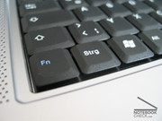 Die verbaute Tastatur im Alb R18 (Asus S96J Barebone) bietet einen leisen und eher weichen Anschlag. Leider biegt sie sich in unserem Testgerät erheblich durch und klappert dadurch auch in der Mitte deutlich. Das Layout ist bis auf die FN Taste links unten (wird gerne mit STRG verwechselt) gut und lädt sofort zum zügigen 10-Finger schreiben ein. Die Tastengrösse ist für ein Notebook dieser Grösse normal.