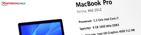 Test Apple MacBook Pro 15 Retina 2.3 GHz Mid 2012