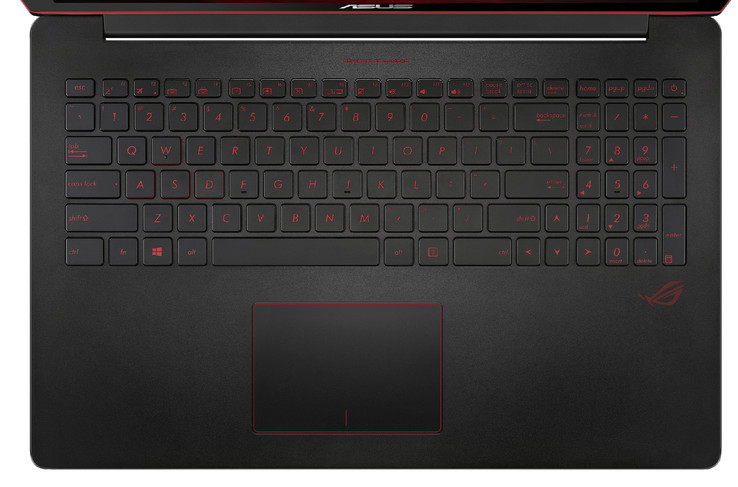 Asus stattet das G501VW mit einer beleuchteten Chiclet-Tastatur aus. Die rote Beleuchtung kennt drei Helligkeitsstufen und wird über zwei Funktionstasten gesteuert. Die flachen Tasten verfügen über einen mittleren Hub und einen deutlichen Druckpunkt. Für unseren Geschmack dürfte ihr Widerstand aber straffer ausfallen. Während des Tippens gibt die Tastatur in der Mitte etwas nach. Insgesamt liefert Asus hier eine ordentliche Tastatur.