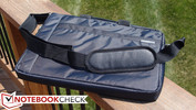 Der Hersteller hat uns außerdem eine Schultertasche/Tragetasche geschickt. Neben Platz für den Laptop selbst gibt es noch die üblichen Einteilungen, aber insgesamt ist die Tasche unspektakulär.