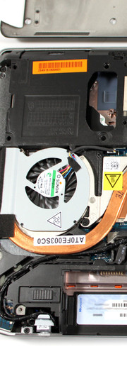 Im Office-Betrieb bleibt das Dell Latitude E6420 auch nach mehreren Stunden Betrieb an seinen Oberflächen angenehm temperiert. Selbst im simulierten „worst case Szenario“ bei Auslastung von GPU und CPU über mehr als eine Stunde bleiben die Erwärmungen der Oberflächen mit bis zu 37°C an der Geräteoberseite und bis zu 41°C an der Unterseite im Rahmen. Nicht ganz so „cool“ verhalten sich allerdings die Komponenten im Inneren des Gehäuses.