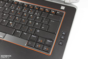 Das Tippgefühl der eingesetzten Tastatur empfanden wir als sehr angenehm. Der Anschlag zeichnet sich durch einen gut dosierten Widerstand und einen deutlichen Druckpunkt aus. Auch die Geräuschkulisse bleibt selbst bei äußerst energischem Anschlag im angenehmen Rahmen. „Highlight“ und in vielen Situationen sehr hilfreiches Feature ist die hinterleuchtete Tastatur. Für 40 Euro Aufpreis sorgt diese für eine stets gut ablesbare Tastenbeschriftung, selbst unter schlechten Umgebungslichtbedingungen (Bahn, Flugzeug,…). Der Spritzwasserschutz samt Flüssigkeitsableitung gehört in dieser Klasse zur Pflichtausrüstung.