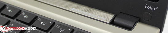 Was man, angesichts der geringen Gehäusebemaßungen, aus der schmal bemessenen, Dolby zertifizierten Lautsprecherleiste zu hören bekommt, ist vor allem bei moderater Lautstärke durchaus beeindruckend. Sehr klar und definiert kommen Höhen und Mitten rüber, die Bässe werden, wie erwartet, nur sehr zart, wenn überhaupt, angedeutet. Das nimmt man dem Folio 13 aber kaum übel, denn vor allem Sprachwiedergabe ist ausgezeichnet. Übersteuerungen fielen beim Test nie auf, ebenfalls kein Krachen - sehr gut gelöst. Ebenfalls beeindruckend ist die maximale Lautstärke. Die reicht locker aus, um auch einen mittelgroßen Raum bei einer Präsentation zu beschallen, allerdings driftet dann die Klangfarbe etwas ins Zischende ab, da die Höhen dann überdefiniert wirken. Was beim Folio 60% der Maximallautstärke ist, ist vergleichsweise bei einem Macbook Pro 15“ die Maximaleinstellung, dabei wirkt der Lautsprechersound des HP-Flachmanns sogar noch etwas druckvoller, wenn auch etwas matschiger, als jener des Profigeräts mit dem Apfel, welches auch oft bei DJs Einsatz als Arbeitstier findet.