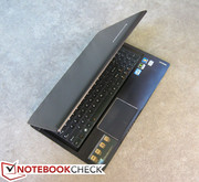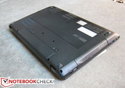 Positiv dagegen ist, dass die Scharniere ziemlich steif sind (nur wenig Vibrationen auf nicht stabilen Oberflächen) und der Bildschirmdeckel auf Verwindungskräfte nur geringfügig nachgibt. Die Basis des Notebooks ist mäßig gut gefertigt und robust, wobei es unter Verwindungskräften nur wenig nachgibt und nicht knarrt. Sogar im zentralen Bereich, eine Schwachstelle bei vielen Notebooks, hält sie Druckeinwirkung überdurchschnittlich gut stand. Wahrscheinlich bedarf nur das Touchpad selbst Verbesserungen, da es sich ziemlich dünn und billig anfühlt.