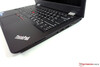 Für Zeigerbewegungen steht neben dem Clickpad auch der rote Trackpoint zur Verfügung, der über drei eigene dedizierte Tasten verfügt. Diese arbeiten angenehm leise und sind bei unserem Testgerät sehr sauber integriert. Insgesamt klappte die Bedienung mit dem Trackpoint einwandfrei. Das Clickpad lässt sich im unteren Bereich klicken, was aber leider ein recht lautes Geräusch erzeugt. Funktional können wir uns aber nicht beklagen, denn zu ungewollten Zeigersprüngen kam es nicht. Die Oberfläche des Pads ist angenehm glatt, mit 9 x 5,5 cm aber nicht sehr groß. Multitouch-Gesten mit maximal drei Fingern wurden aber dennoch sauber umgesetzt.