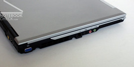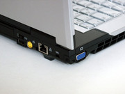 Die Anschlüsse betreffend kann man behaupten, dass diese gut aufgeteilt sind. LAN, VGA, S-Video und 2x USB sind um das linke hintere Eck konzentriert. Audio Ports, Firewire und Modem finden an der linken Seite Platz wo auch der Lüfter sitzt. Rechterhand ist das DVD Laufwerk und ein weiterer USB Port zu finden. Außerdem bietet das X60 einen Docking Port an der Geräteunterseite.