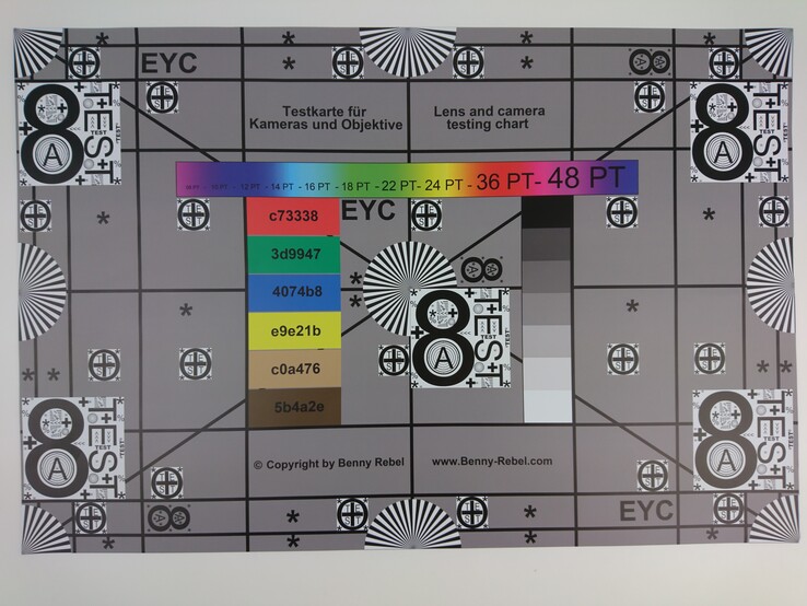 Szene 1Szene 2Szene 3Zusätzlich zu unseren normalen Testbildern beurteilen wir die Farbgenauigkeit und die Bildschärfe unter kontrollierten Testbedingungen. Im Nachhinein werden die Bilder nicht bearbeitet und es findet auch kein manueller Weißabgleich statt. Bei den Farben zeigt sich der Sony-Sensor sehr farbtreu und es gibt keine drastischen Abweichungen, nur einige Farbtöne werden wie schon beim größeren Xperia X etwas zu hell dargestellt. Das Testchart wird sehr scharf dargestellt, hierbei profitiert das Gerät von der hohen Auflösung. Selbst bei dem Ausschnitt aus der Mitte des Bildes sind nur minimale Unsauberkeiten an den Kanten zu sehen. Insgesamt also eine gute Leistung.