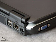 Die Anschlüsse sind unserer Meinung nach gut aufgeteilt - eventuelle ständig belegte Ports wie Netzwerk, VGA-out, Stromanschluss und 2 USB 2.0 Ports sind rund um das linke hintere Eck des Gerätes konzentriert und verhindern dadurch unnötigen Kabelsalat. Nur der Audio Aus-/Eingang liegt an der Vorderkante des Gerätes - Ideal für Headphones, problematisch beim Anschluss an ein externes Soundsystem.