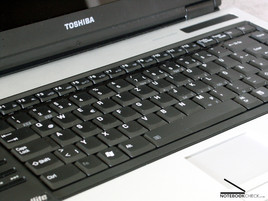 Das Toshiba Satellite A-100 153 bietet eine für 15" Geräte normalgroße Tastatur. Die Tasten sind zwar etwas wackelig und bieten jedoch ein weiches Schreibgefühl. Trotzdem konnte ich damit angenehm und fehlerfrei tippen.
