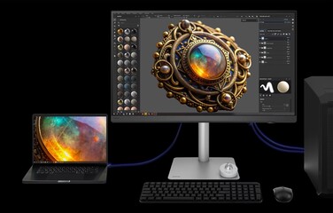 Mit einer vollflächigen Helligkeit von 400 Nits ist der Monitor von BenQ nicht ganz so hell wie das Apple Studio Display, dafür fällt das Kontrastverhältnis von 2.000:1 doppelt so hoch auf. Der DCI-P3-Farbraum kann zu 98 Prozent dargestellt werden, der Rec.709-Farbraum zu 100 Prozent. Anders als bei Apple gehört ein höhenverstellbarer Standfuß beim BenQ PD2730S zur Standardausstattung. Der Bildschirm besitzt gleich zwei Thunderbolt 4-Anschlüsse – einer zum Anschluss an einen Laptop, der so auch mit bis zu 90 Watt geladen werden kann, der andere für den Anschluss eines zweiten Monitors oder Thunderbolt-Geräts.