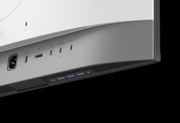 Alternativ kann der Bildschirm über HDMI 2.1 oder DisplayPort 1.4 an einen Computer angeschlossen werden. Der Bildschirm besitzt einen integrierten USB-Hub mit dreimal USB-A sowie einmal USB-C und einen integrierten KVM-Switch. Benq verbaut auch 2 x 3 Watt Stereo-Lautsprecher. Eine Besonderheit ist der Hotkey Puck, der unter anderem die Bildschirmhelligkeit oder auch Software-Werkzeuge steuern kann.