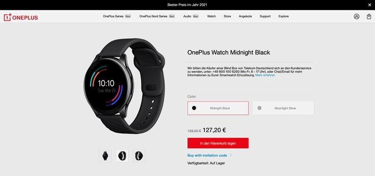 Zum Cyber Monday gibt es die OnePlus Watch direkt über die Webseite des Herstellers für nur 127 Euro. Laut Preisvergleich ist das der Allzeit-Bestpreis der Smartwatch, die regulär für eine unverbindliche Preisempfehlung von 159 Euro angeboten wird. Auf Amazon kostet die OnePlus Watch nach wie vor 145 Euro.