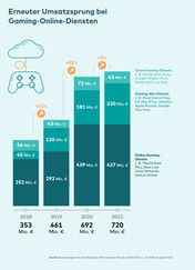 Alleine in Deutschland kletterte der Umsatz mit Computer- und Videospielen sowie dazugehöriger Hardware kräftig um 17 Prozent auf rund 9,8 Milliarden Euro. Deutschland bleibt damit in Europa der größte Games-Markt nach Umsatz und weltweit Nummer fünf. Die größten Wachstumstreiber waren Spielekonsolen (+23 Prozent) und Zubehör für Spiele-PCs (+22 Prozent), sowie In-Game- und In-App-Käufe (+30 Prozent).