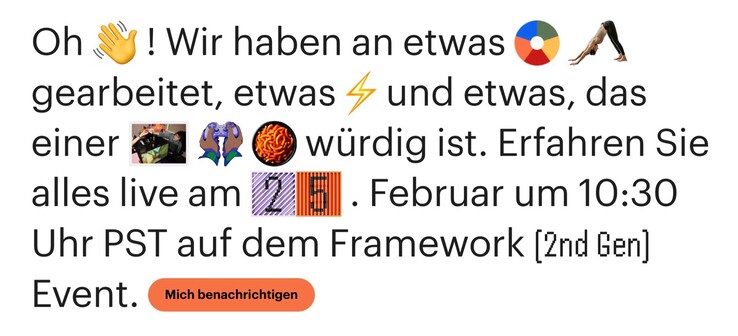 Framework hat auch bestätigt, dass am 25. Februar die Vorbestellungen für "mindestens ein neues Produkt" eröffnet werden, und dass dieses Produkt langlebig, aufrüstbar und reparierbar sein wird. Framework deutet abschließend an, dass der Konzern in eine neue Produktkategorie einsteigen wird. Was genau all diese kryptischen Teaser bedeuten, wird spätestens der Event-Livestream zeigen, der auf YouTube mitverfolgt werden kann.