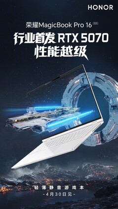 Das MagicBook Pro 16 war im Vorjahr noch maximal mit einer Nvidia GeForce RTX 4060 Laptop-GPU ausgestattet, in diesem Jahr erhält das dünne Gaming-Notebook ein Upgrade auf die Nvidia GeForce RTX 5070 Laptop-GPU, wie Honor durch eine Reihe von Teaser-Bildern offiziell bestätigt hat. Das Design ändert sich den Bildern nach zu urteilen kaum, sodass auch das neue Modell rund 19,9 Millimeter dünn und 1,8 Kilogramm leicht sein dürfte.