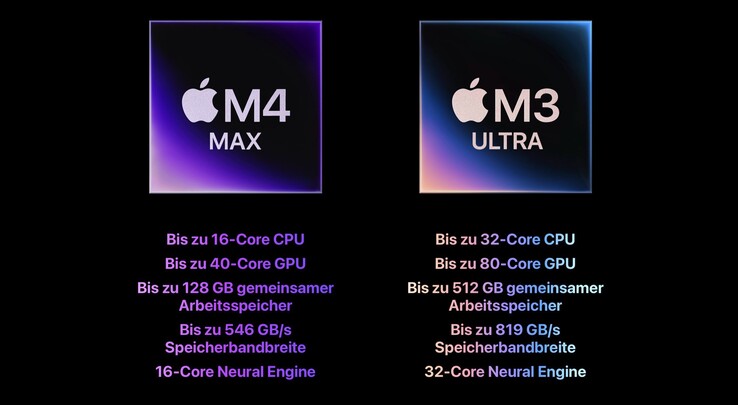 Laut Apple ist der neue M3 Ultra in Anwendungen wie 3D-Rendering oder der Berechnung von Large Language Models mehr als doppelt so schnell wie der M2 Ultra, bei Anwendungen wie Videobearbeitung zeigen aber selbst Apples Benchmarks nur geringe Fortschritte. Der Chip wird mit bis zu 512 GB Arbeitsspeicher mit einer Speicherbandbreite von 819 GB/s kombiniert.