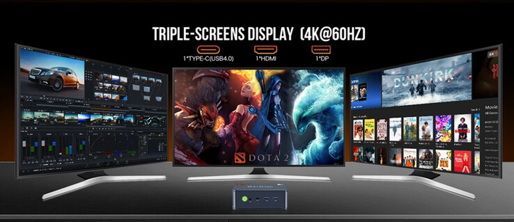 Bis zu drei Displays mit 4K-Auflösung kann der Mini-PC mit maximal 60 Hz bespielen. Hierfür stehen einmal HDMI, einmal DisplayPort und einmal USB4 zur Verfügung. Verantwortlich für die Grafikausgabe ist die AMD Radeon 660M mit sechs Kernen und 1.900 MHz. Damit erfüllt die GPU auch Anforderungen von komplexeren Aufgaben im Bereich Grafikbearbeitung und Co, taugt zudem für Gaming.