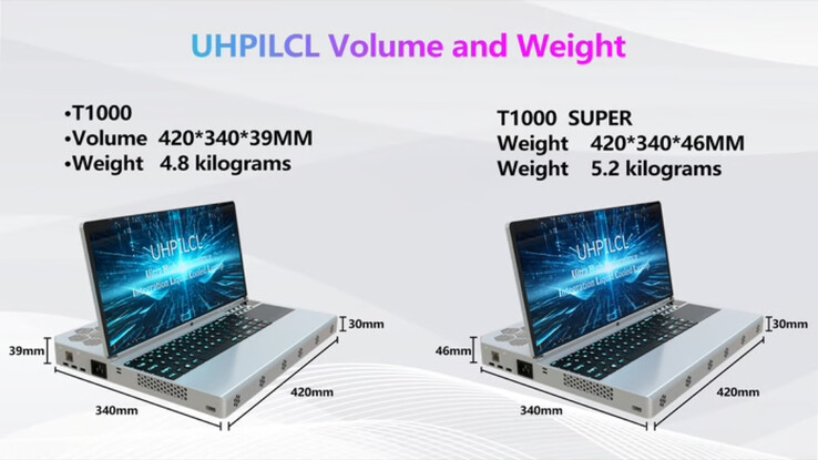 Die Desktop-Hardware hat den Vorteil, dass das System für Laptop-Verhältnisse besonders einfach gewartet und aufgerüstet werden kann. In einem Mobil-Modus mit reduzierter Verlustleistung soll eine Akkulaufzeit von bis zu drei Stunden möglich sein. UHPILCL besitzt ein 17,3 Zoll IPS-Panel im 21:10-Format, das eine Bildfrequenz von 120 Hz, 3K-Auflösung und eine vollständige Darstellung des DCI-P3-Farbraums ermöglicht. Eine Tastatur mit RGB-Beleuchtung, Quad-Lautsprecher, zwei M.2- sowie zwei SATA-SSDs und eine 4K-Webcam runden die Ausstattung ab.