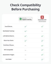 Außerdem ist die SwitchBot Wallet Finder Card auch über die SwitchBot-App ortbar und meldet sich mit einem 78 dB lauten Signalton, wenn sie samt getracktem Gegenstand gesucht wird. Dazu kann die Karte in entgegengesetzter Richtung mit zweimaligem Drücken der Taste genutzt werden, um ein verlegtes Smartphone oder Tablet zum Klingeln zu bringen.