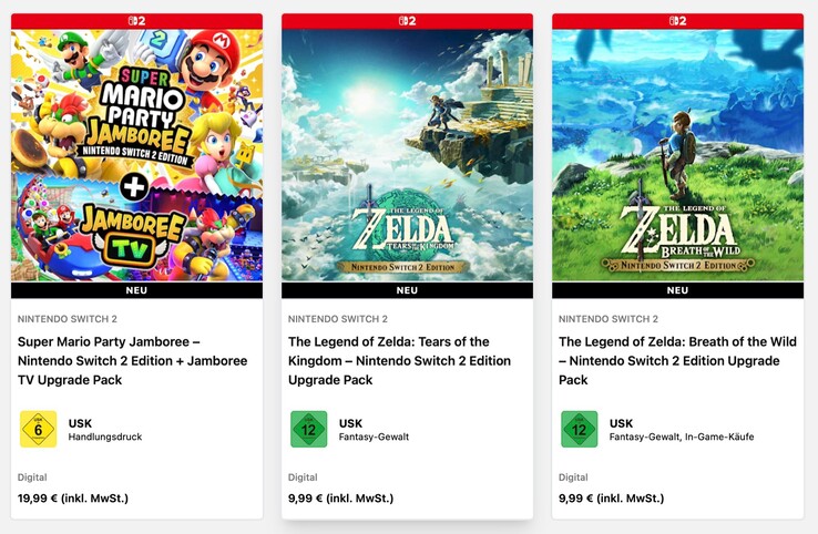 Neukunden können allerdings ein wenig sparen. Einerseits, indem die Version für die ältere Nintendo Switch als Spielmodul bei einem Händler erworben wird, denn viele der genannten Spiele sind bereits günstiger zu bekommen. So kostet etwa The Legend of Zelda: Breath of the Wild im Preisvergleich nur noch rund 50 Euro, zusammen mit den 10 Euro für das Upgrade sparen Käufer so insgesamt knapp 20 Euro. Der Nachteil: Die Nintendo Switch 2 Edition muss heruntergeladen und auf der Konsole gespeichert werden, da das Spielmodul nur die Version für die ältere Nintendo Switch enthält.