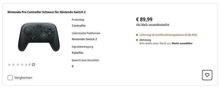 Nintendo bietet schon zum Launch zahlreiche Zubehör-Produkte an, darunter einen Joy-Con-Handgriff mit USB-C-Stecker zum Aufladen der Controller für 34,99 Euro, einen Pro Controller für 89,99 Euro, ein zweites Set Joy-Con 2 für ebenfalls 89,99 Euro und zwei unterschiedliche Kameras für 40 respektive 60 Euro. Nintendo liefert ein Netzteil mit, bietet aber ein zusätzliches USB-C-Ladegerät für 29,99 Euro an.