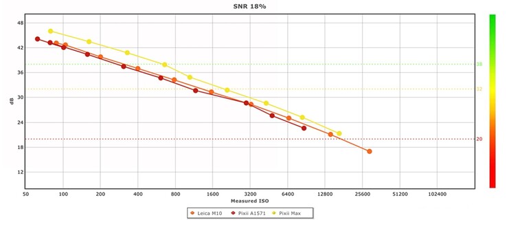 Der große Vorteil der Pixii Max im Vergleich zur Pixii Plus und zur Leica M10 ist die Leistung bei wenig Licht, denn die Kamera erzielt eine vergleichbare Bildqualität bei einer rund 0,5 Blendenstufen höheren Lichtempfindlichkeit. Der Sensor der Pixii Max leistet sich keine gröberen Schwächen, sodass DxOMark die Kamera im Hinblick auf ihren Preis als attraktive Alternative zur Leica M10 beschreibt.
