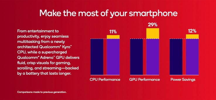 Trotz der moderneren Architektur und einer Fertigung im fortschrittlicheren TSMC N4-Verfahren bewirbt Qualcomm nur eine 11 Prozent höhere CPU-Performance und einen 12 Prozent niedrigeren Stromverbrauch. Ein neuer Grafikchip, zu dem Qualcomm keine näheren Details bestätigt hat, soll eine 29 Prozent bessere GPU-Performance ermöglichen, wovon gerade die Gaming-Leistung profitieren dürfte.