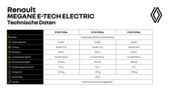 Bei Renaults Megane E-Tech Electric dient die CMF-EV-Plattform als Basis für das E-Auto. Wie die eingefügten Abbildungen zeigen, stehen für den elektrischen Megane zwei Batterievarianten zur Wahl: EV40 mit 40 kWh für bis zu 300 km Reichweite (WLTP) und EV 60 mit 60 kWh und bis zu 470 km. Bei der Antriebsbatterie des Megane E-Tech Electric handelt es sich um einen Lithium-Ionen-NMC (Nickel, Mangan, Kobalt)-Akku mit bis zu 600 Wh/l Energiedichte. Mit einer Bauhöhe von 11 Zentimetern zählt die flüssigkeitsgekühlte Antriebsbatterie des Renault-Stromers aktuell zu den schlankesten E-Auto-Akkumodulen auf dem Markt.