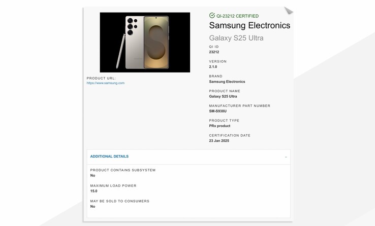 Demnach wurde die Galaxy S25-Serie nach dem Qi2.1-Standard zertifiziert, und unterstützt das Extended Power Profile, wodurch die Smartphones mit bis zu 15 Watt drahtlos geladen werden können. Samsung äußert sich im Datenblatt nicht dazu, ob schnellere Ladevorgänge mit proprietären Ladegeräten möglich sind. Gerüchte deuteten darauf, dass die Galaxy S25-Serie drahtlos mit bis zu 25 Watt geladen werden kann, da Qi2 auf maximal 15 Watt beschränkt ist, müsste dazu aber in jedem Fall ein proprietäres Ladegerät verwendet werden. Diese Vorgehensweise würde dem Apple iPhone 16 entsprechen – auch Apples Flaggschiff kann per Qi2 nur mit 15 Watt geladen werden, mit teureren MagSafe-Ladegeräten sind allerdings bis zu 25 Watt möglich.
