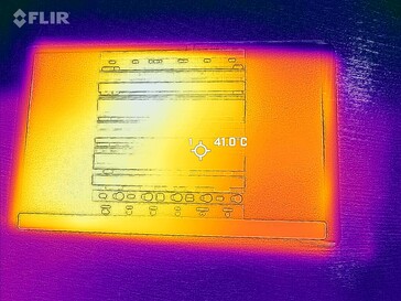(-) Auf der Unterseite messen wir eine maximalen Wert von 46.8 °C (im Vergleich zum Durchschnitt von 33.2 °C).