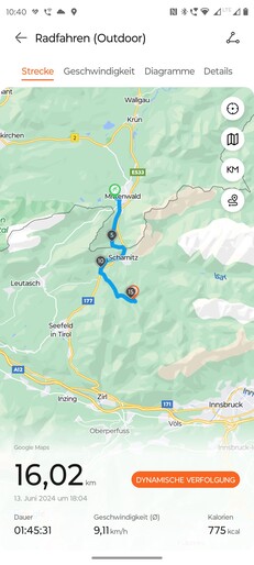 In diesem Bereich schlägt sich die Space Edition besser. Bei einer Radrunde gemeinsam mit einer Garmin Venu 2 stimmt die aufgezeichnete Route mit dem Straßenverlauf überein. Auch Navigation ist mit der Watch 4 Pro Space Edition möglich. Einerseits können Trainings nach gespeicherten Routen absolviert werden. Andererseits bietet Huawei den eigenen Kartendienst Petal Maps auch auf der Smartwatch an.