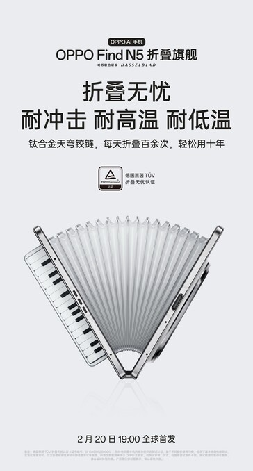 Das Oppo Find N5 wird am Donnerstag, dem 20. Februar, offiziell vorgestellt. Das faltbare Smartphone soll mit einer Bauhöhe von 4,2 Millimetern das dünnste Falt-Phone der Welt werden – dieser Titel gehörte bislang dem 4,4 Millimeter dicken Honor Magic V3 (ca. 1.699 Euro auf Amazon).