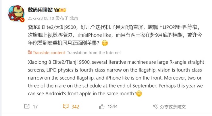 Das bedingt natürlich, dass die Chiphersteller mitspielen und so könnte erstmals auch ein Launch sowohl des Mediatek Dimensity 9500 als auch der potentiell Snapdragon 8 Elite Gen 2 benannten, nächsten Qualcomm-Mobilplattform im September auf dem Terminplan für 2025 stehen, sofern sich diese Gerüchte bewahrheiten. Zumindest zwei oder drei Android-OEMs drängen scheinbar darauf, mit ihren iterativen Flaggschiff-Neuheiten bereits parallel oder kurz nach dem iPhone 17 Launch starten zu können. Xiaomi wird mit dem Xiaomi 16 und Xiaomi 16 Pro vermutlich wieder ganz vorne mit dabei sein, auch OnePlus und Motorola sind in China gewöhnlich unter den ersten.