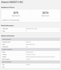 An der Front erwarten wir ähnlich wie am Mi 10, bei Amazon aktuell ab 630 Euro zu haben, ein seitlich gebogenes 6,67 Zoll AMOLED-Display mit Punch-Hole Selfie-Cam, nun aber als schnellere 120 Hz-Variante. In der Benchmark-Datenbank Geekbench ist das Mi 10 Ultra unter der Modellnummer M2007J1SC beziehungsweise dem Codenamen "cas" bereits mit 16 GB Speicher zu finden und zwar mehrmals - die Testgeräte kursieren also bereits. Überraschungen liefert Geekbench keine. Die Performance ist hier am üblichen Snapdragon 865-Niveau.