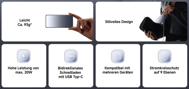Die maximale Ladeleistung über den einen verbauten USB-C-Anschluss beträgt 20 W, sodass beispielsweise ein Xiaomi 14 laut Herstellerangaben binnen 30 Minuten auf 39 Prozent geladen werden kann. Die Powerbank wird auch über den gleichen Anschluss geladen, was mit maximal 18 W gelingt. Ein USB-Kabel liegt im Lieferumfang der Xiaomi Ultra Slim Power Bank 5000mAh bei. Dazu runden diverse Sicherheitsfunktionen wie Temperatur-, Überspannungs- sowie Überladungs- und Überentladungsschutz die Ausstattung der ultraschlanken und leichten Powerbank-Neuheit von Xiaomi ab.