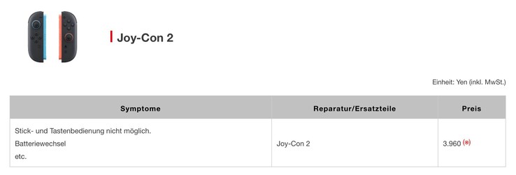 Ein defektes Dock zu reparieren kostet 6.930 Yen (ca. 42 Euro), mehr als doppelt so viel wie noch beim Vorgängermodell. Für eine Reparatur der Joy-Con 2 veranschlagt Nintendo eine Pauschale von 3.960 Yen (ca. 25 Euro) pro eingeschicktem Joy-Con, 38 Prozent mehr als für die Joy-Con der ersten Generation. Immerhin bietet Nintendo nach wie vor übersichtliche Pauschalpreise, sodass sich Kunden schon vor dem Einschicken der Konsole ein Bild von den zu erwartenden Kosten machen können. Die Preisliste von Nintendo Deutschland wurde noch nicht um Details zur Nintendo Switch 2 erweitert.
