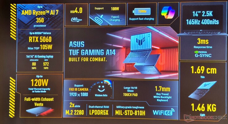 Asus hat zur Computex noch keine Details zum Preis und zur Verfügbarkeit des TUF Gaming A14 bestätigt. Zur Einordnung: Das Modell aus dem Vorjahr mit Ryzen AI 9 HX 370 und GeForce RTX 4050 kostet rund 1.309 Euro auf Amazon.