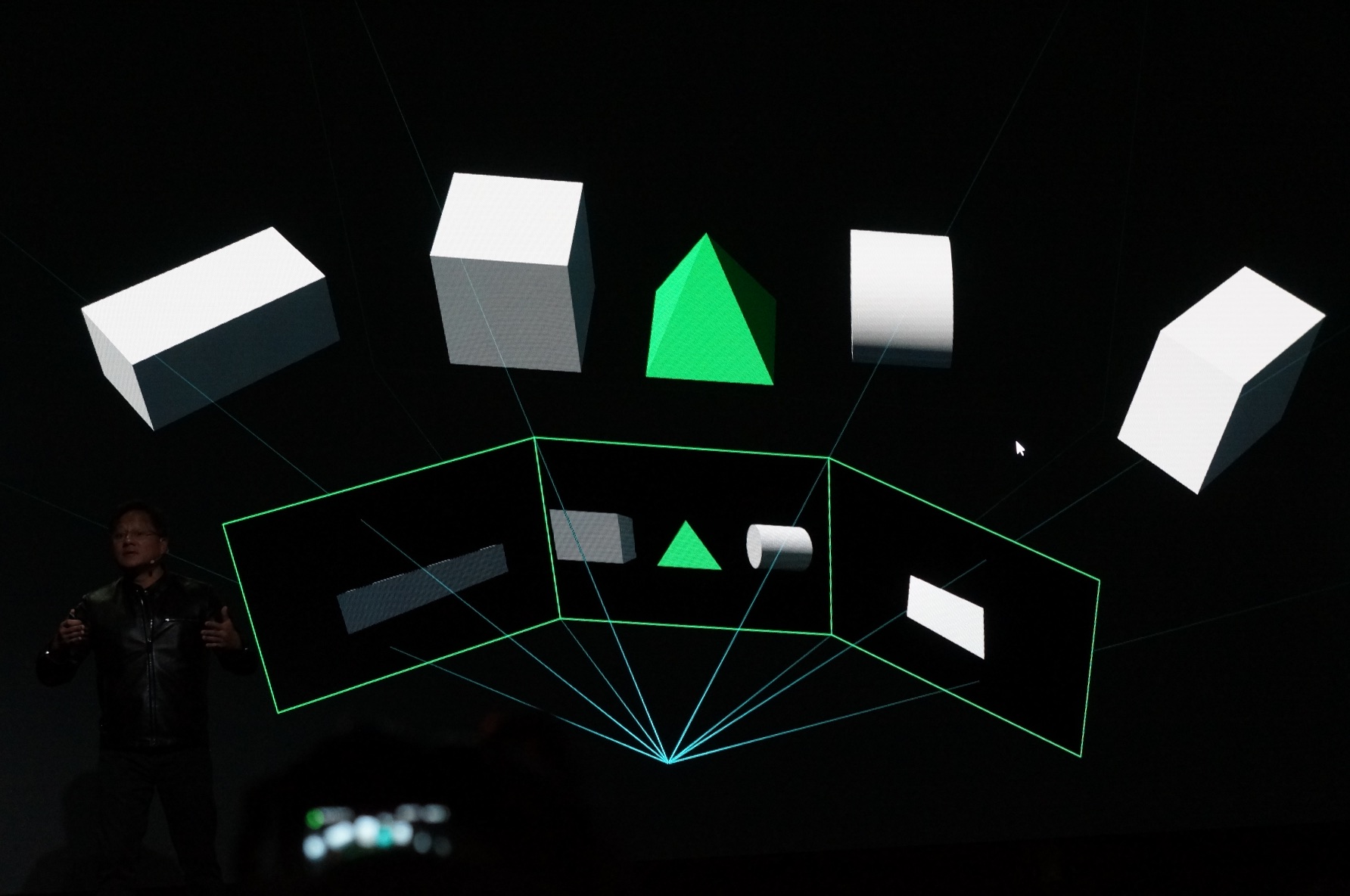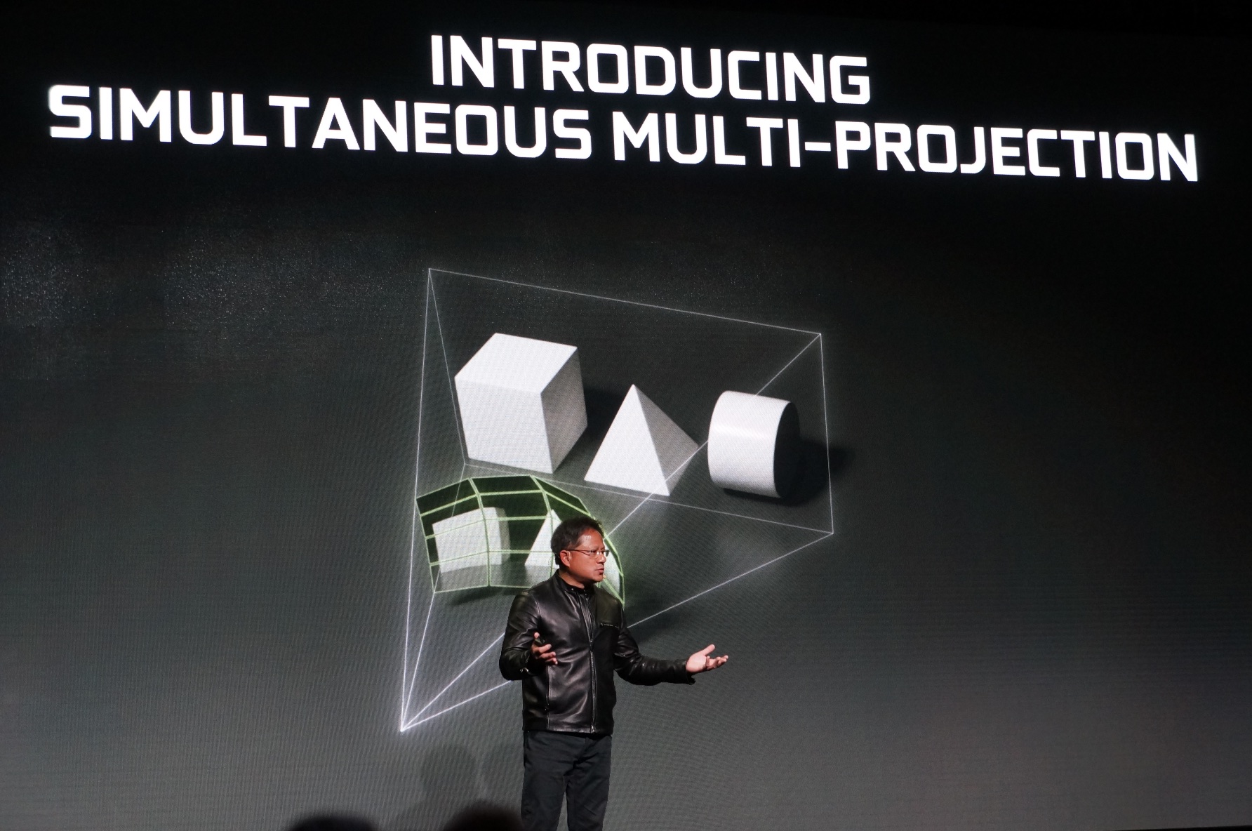 • 2x VR Graphics Performance: VRWorks Graphics now includes a simultaneous multi-projection capability that renders natively to the unique dimensions of VR displays instead of traditional, 2D monitors. It also renders geometry for the left and right eyes simultaneously in a single pass.