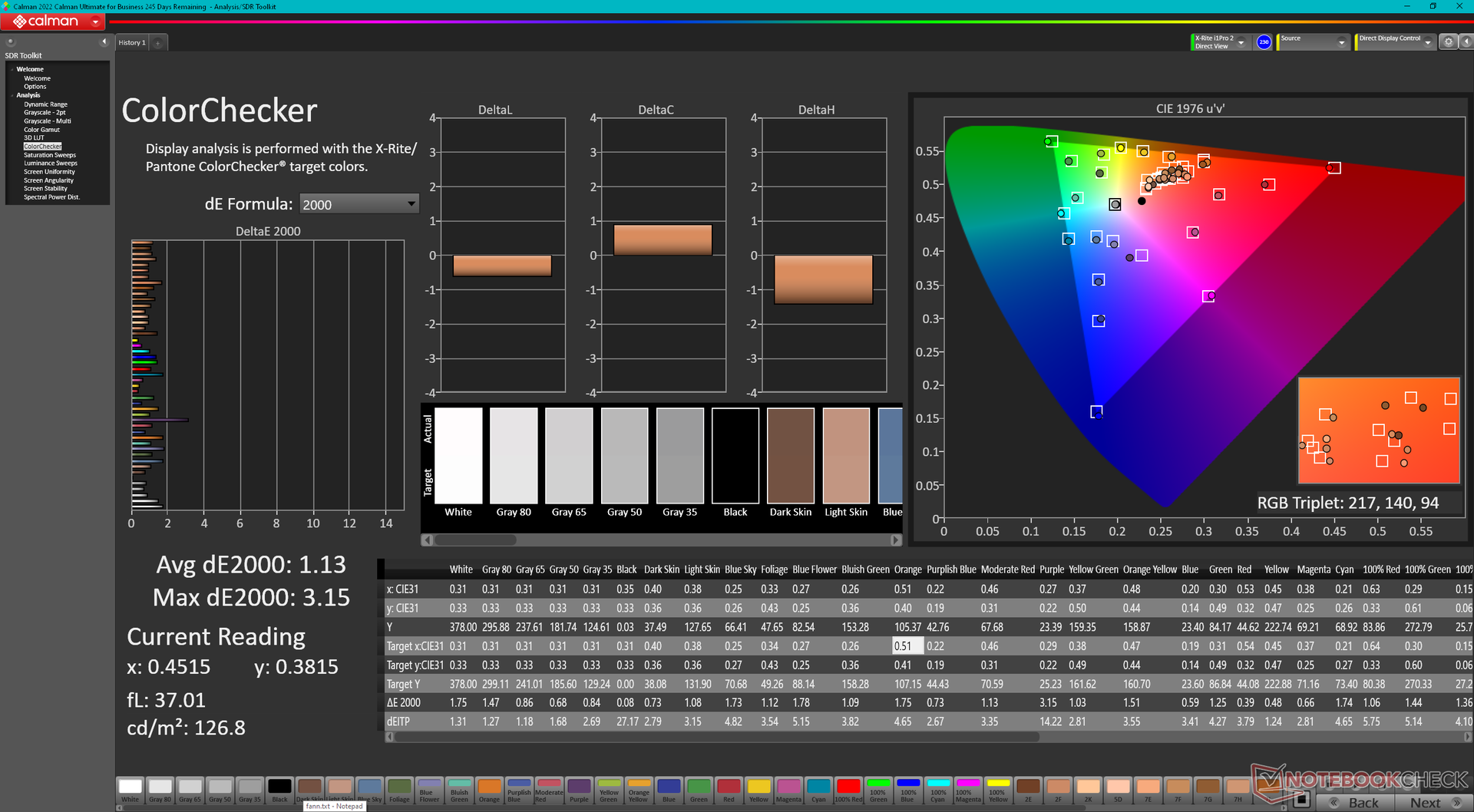 ΔE ColorChecker Calman: 1.13 | ∀{0.5-29.43 Ø4.78}