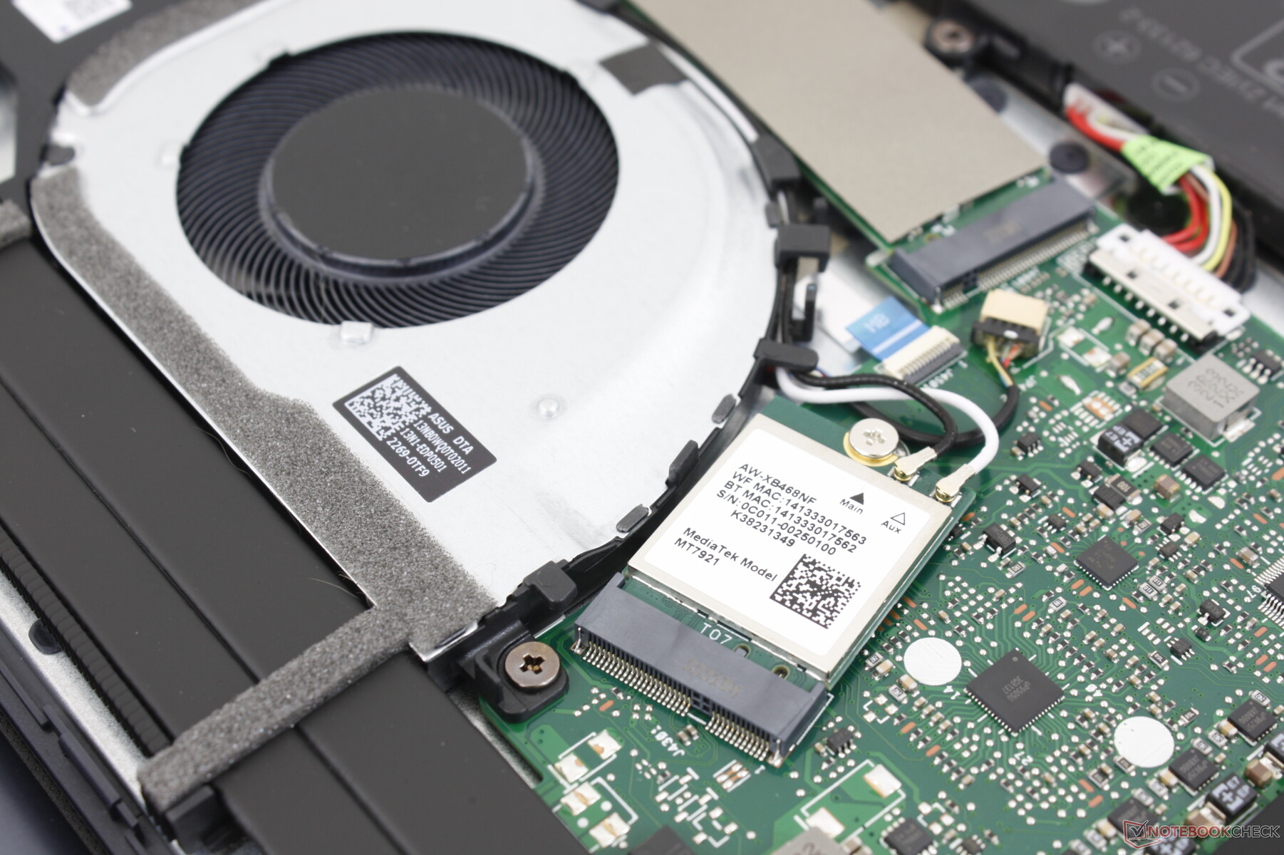 Wi-Fi 6 und Bluetooth 5 werden über das Modul MediaTek MT7921 bereitgestellt. Zwar bewegen sich die Übertragungsraten auf Erwartungsniveau, aber die Empfangsraten fluktuieren etwas stark, wie unser Graph unten verdeutlicht. Im Alltag oder beim Streaming bemerkt man dies eher nicht, dennoch bedeutet dies einen Schritt zurück gegenüber Laptops mit Intel-AX-Modul, auf denen die Transferraten stabiler ausfallen.