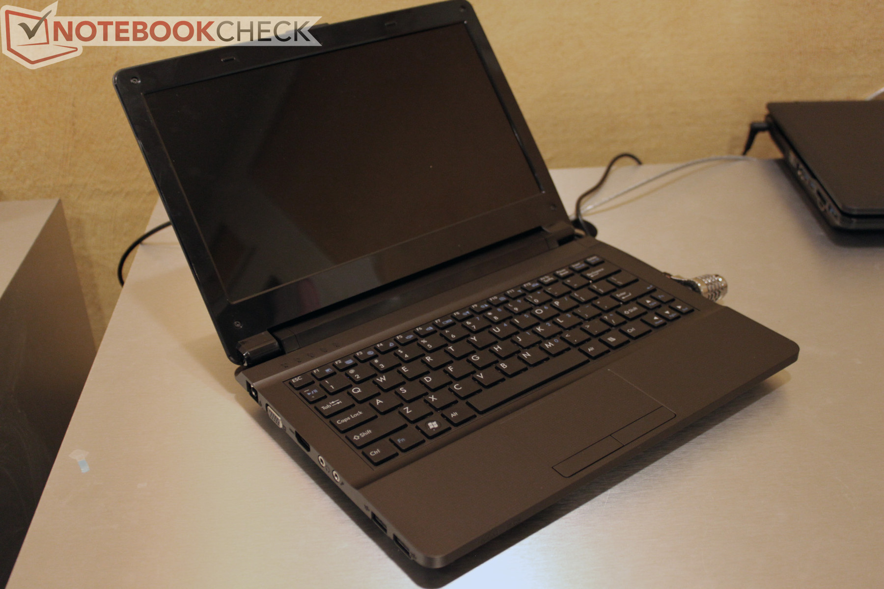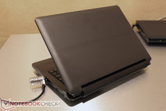 Im gezeigten Pre-Production-Sample dürfte es sich um ein Barebone von Clevo handeln. Aufgrund des frühen Entwicklungsstatus des bislang unbekannten Gehäuses darf spekuliert werden, dass bereits Intel Dualcore Prozessoren der Ivy-Bridge Palette zum Einsatz kommen könnten. Für Quadcore-Chips wird das Gerät angesichts der erheblich höheren Kühllast wohl nicht ausgelegt sein. Das für ein 11-Zoll Notebook vergleichsweise voluminöse Gehäuse mit üppig dimensionierter Kühllösung legt zudem den Schluss nahe, dass ähnlich dem 11-Zoll Gamer Alienware M11x (hier im Test) auch hier Grafiklösungen der oberen Mittelklasse zum Einsatz kommen könnten. In Frage kämen hier etwa die kürzlich von Acer auf der Cebit genannten Geforce GT 640M bzw. GT 650M Grafikchips, die Acer beispielsweise auch in flachen Ultrabooks der Aspire-Produktlinie einsetzen will.