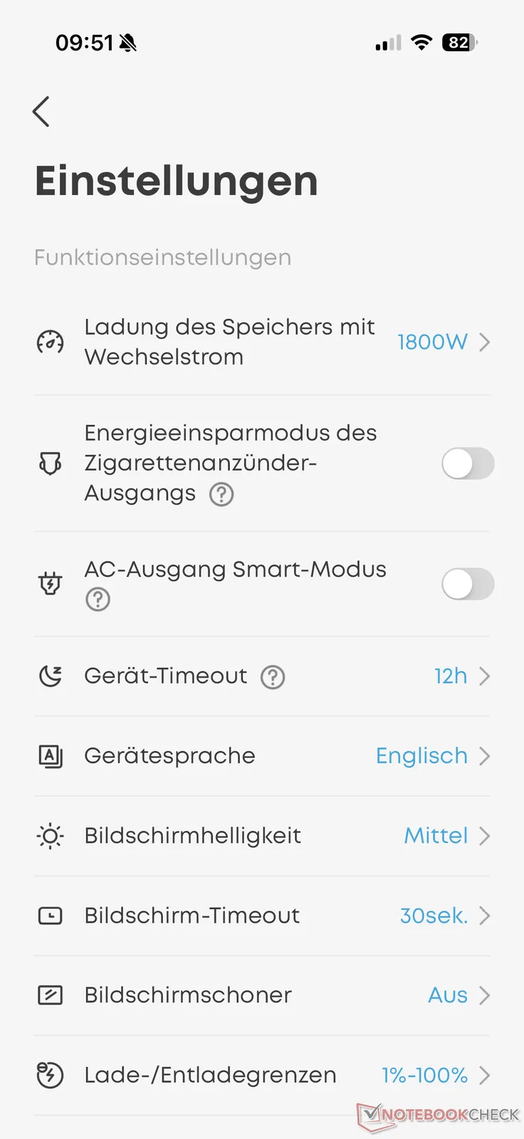 Dazu kommen verschiedene Einstellungen rund um die Ladegeschwindigkeit, Lade- und Entladegrenzen, Energiesparoptionen, Displayoptionen und mehr. Ein Teil der Einstellungen ist dank des neuen Displays nun auch direkt an der Powerstation veränderbar. Zudem liefern zwei Screens detailliertere Angaben zu den aktuellen Leistungswerten.