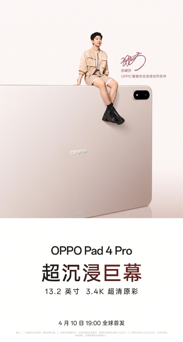 Im Vergleich zum Oppo Pad 3 Pro, das mit einem 12,1 Zoll Display ausgestattet war, wird Oppos Flaggschiff-Tablet der nächsten Generation offenbar wesentlich größer. Denn die Teaser-Bilder bestätigen bereits, dass das Oppo Pad 4 Pro mit einem 13,2 Zoll großen Display ausgestattet sein wird, das eine Auflösung von 3.582 x 2.400 Pixel und eine Helligkeit von 900 Nits erreicht – das deutet darauf, dass weiterhin ein LCD statt eines OLED-Panels zum Einsatz kommt.