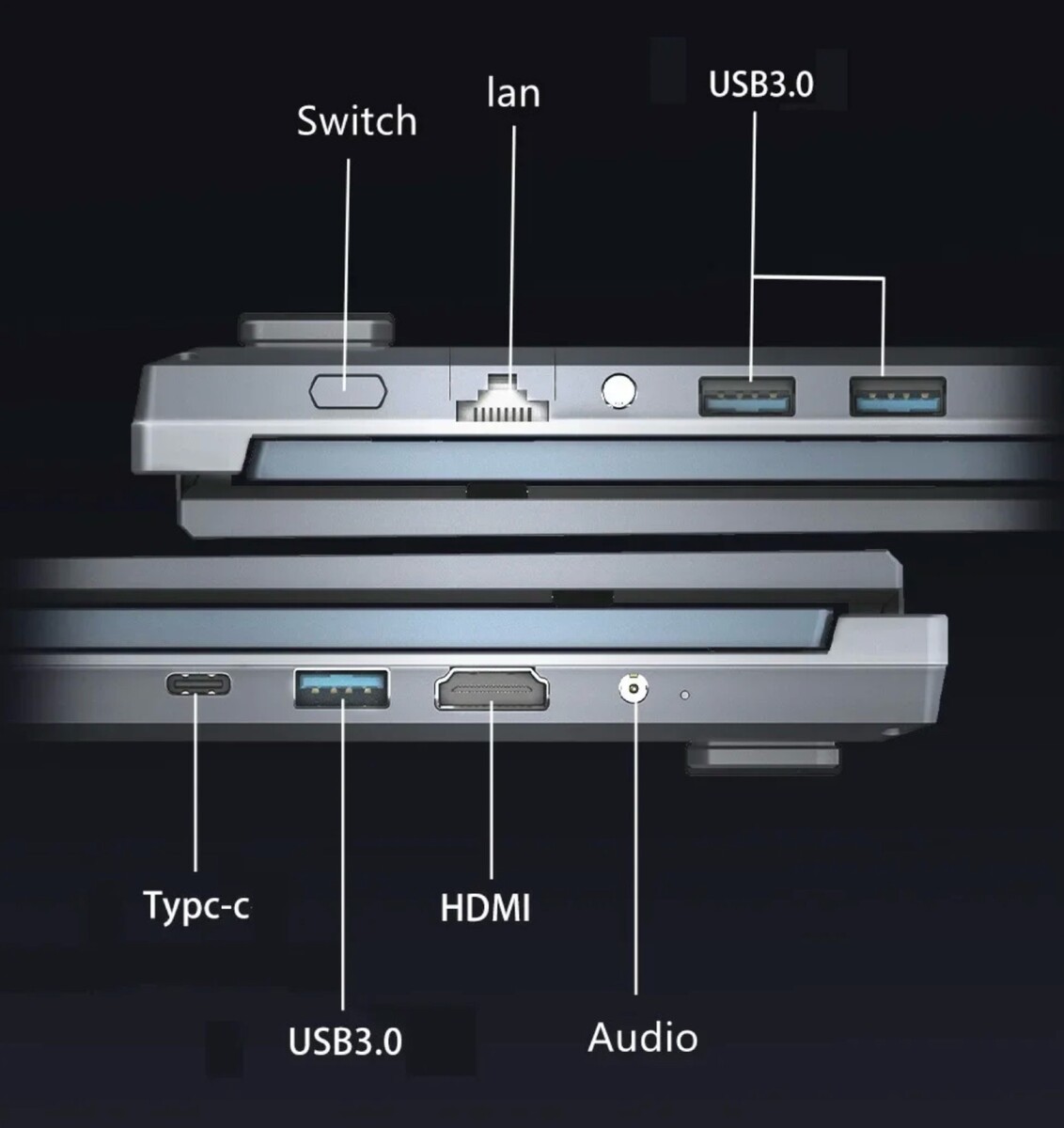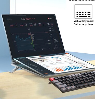 Der Laptop verzichtet auf eine Tastatur, Nutzer können wahlweise eine Software-Tastatur auf dem unteren Display einblenden, oder eine Bluetooth-Tastatur verbinden. Ausklappbare Füße erlauben es, den Winkel des unteren Bildschirms anzupassen, und das Hauptdisplay etwas höher zu positionieren. Das Topmodell des DS16 setzt auf einen Intel Core i7-1260P, der vier Performance-Kerne mit Taktfrequenzen bis 4,7 GHz mit acht Effizienz-Kernen kombiniert.